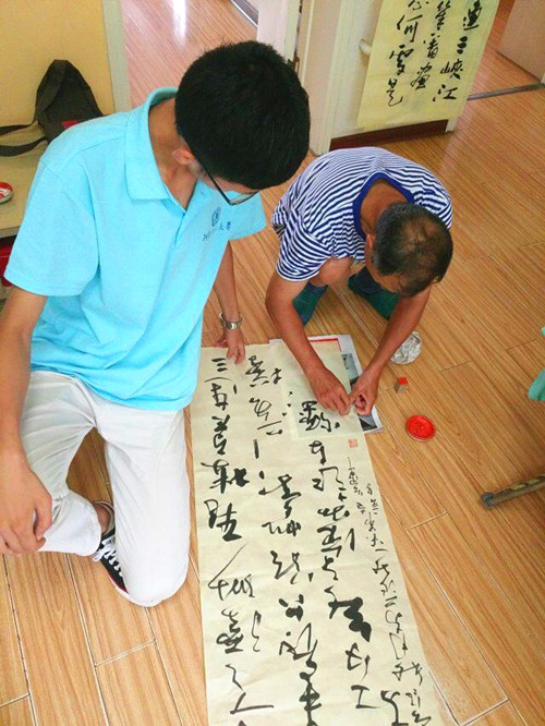 活动伊始,所有志愿者都有条不紊的开展着工作。第一、二小分队继续在小区里举牌宣传并做好上门维修服务,赵娜老师带领第三小分队驻守在社区服务中心为前来询问的居民答疑解难。今天虽然是实践活动的最后一天,但所有人的热情依旧高涨,积极热心的帮助居民解决棘手的问题。居民刘大爷在志愿者帮助维修电脑时,还拉着志愿者聊家常。在谈话过程中,了解到刘大爷儿子在河师大上班,所以见到河师大的志愿者们倍感亲切,临走之时刘大爷还送给志愿者一副亲手写的毛笔字。