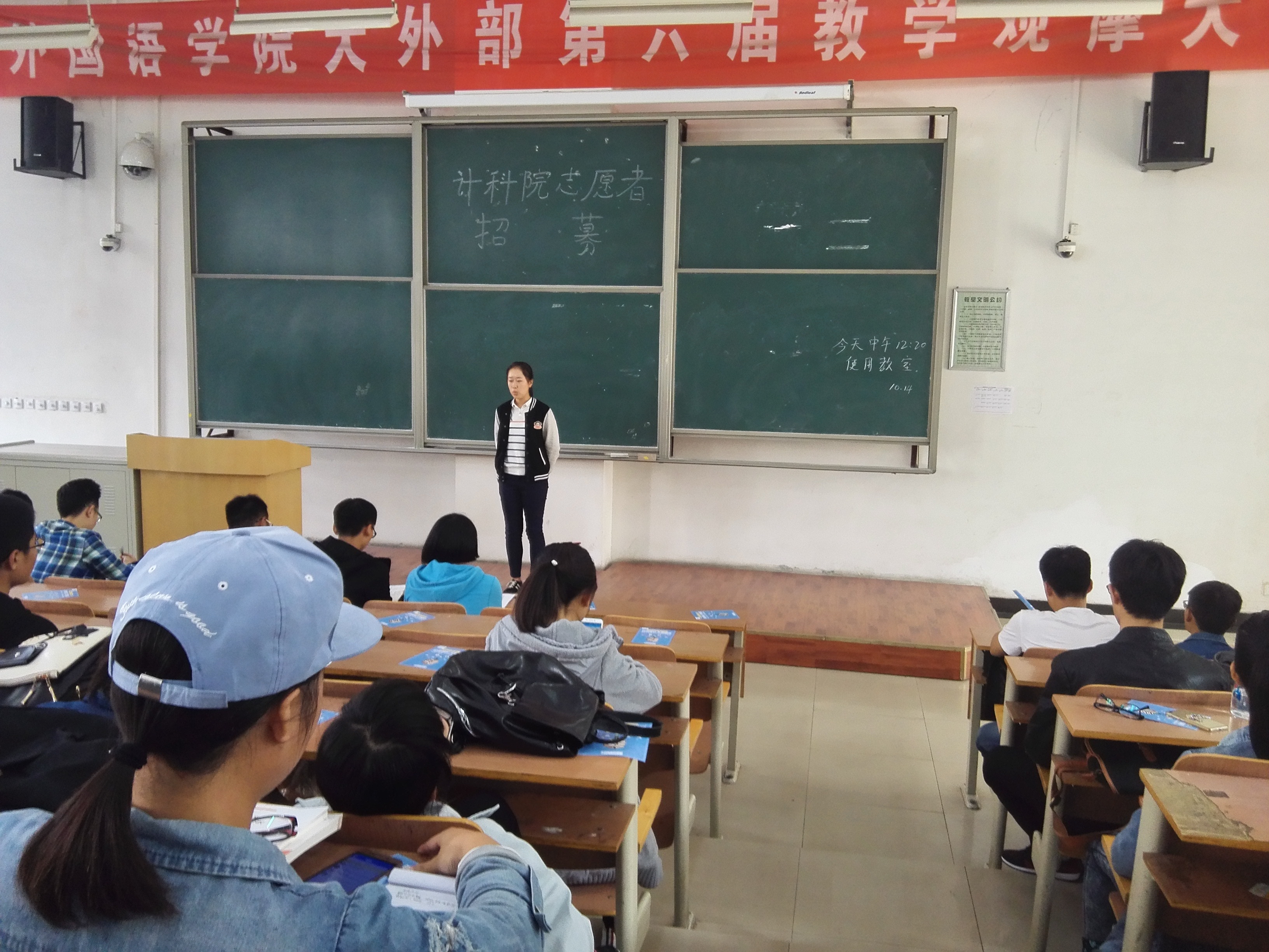 为充分调动我院学生的积极性,更好地为同学们服务,自10月14起,我院在东教B教学楼202教室举办了为期两天的志愿者招募活动。本次活动由我院志愿者服务部主办,志愿服务部部长主持。学院2016级100多名同学参加了此次活动。