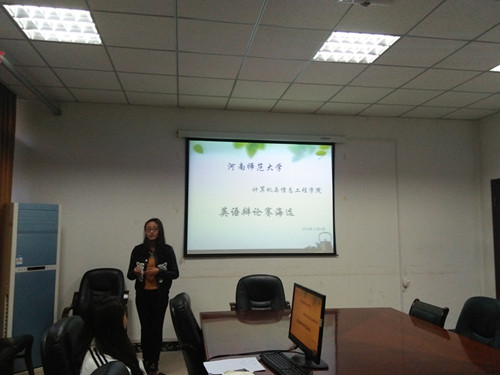 为积极响应校团委号召,丰富我院学生课余生活。12月5日下午,我院于计科楼103会议室举办了英语辨论赛海选。本次海选由心理部部长潘梦梦主持,由心理部成员担任评委。