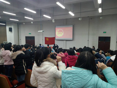活动伊始,主持人向大家介绍了本次活动的意义即缅怀“一二·九”运动给我们带来的深刻影响,思考作为社会主义接班人的现代大学生,我们该怎么做。接着,全体起立,共同奏唱校歌。之后,主持人组织与会人员观看了一二·九电影《青春之歌》,激起了大家心中澎湃的爱国情怀。随后,由团委学生会常务副主席薛然作为学生代表,以《当代新青年该做什么》为题发表了引人深思的讲话,她说到“今日之责,不在他人,而在我少年”,较大的鼓舞了同学们的干劲。最后,团委学生会主席潘诗杰带领全体同学重温入团誓词,同学们用铿锵有力的声音凝聚成坚定的信念,为自己是一名光荣的共青团员而自豪。活动伴随着团歌落下帷幕。