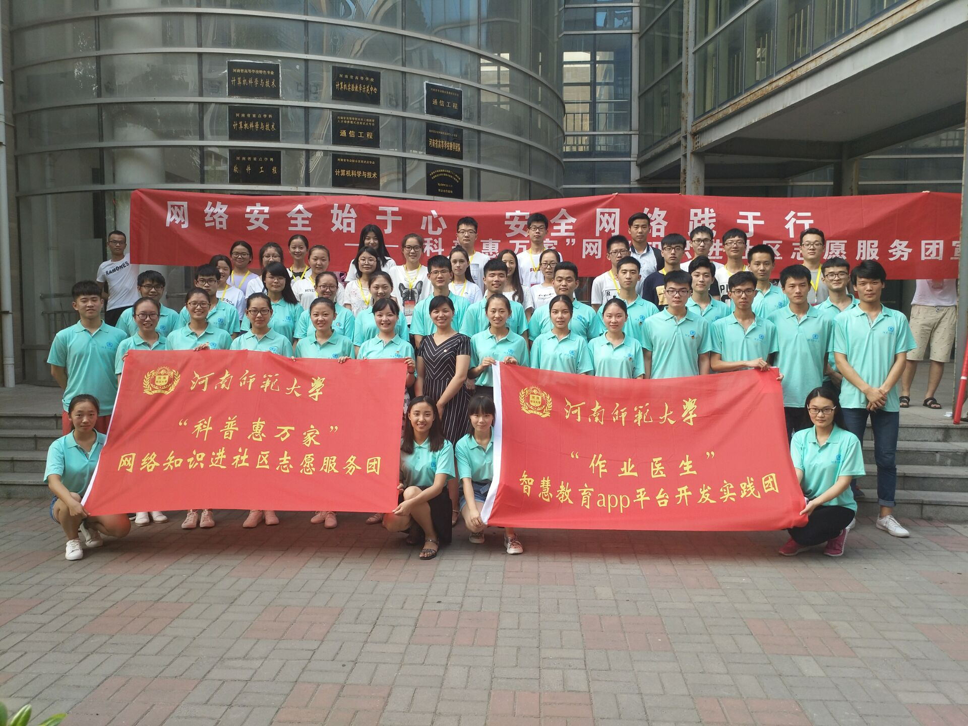 为积极响应共青团中央、团省委、校团委号召,鼓励学生以奋进的青春姿态、建功的实际行动、丰硕的实践成果喜迎党的十九大胜利召开,7月3日下午,计算机与信息工程学院、软件学院在217报告厅举办了2017年大学生暑期“三下乡”社会实践活动出征仪式。本年度,我院获批“科普惠万家”网络知识进社区志愿服务团和“作业医生”智慧教育app平台开发实践团两支校级团队,组建“科普惠万家”网络知识进社区志愿服务返乡实践队院级团队,共有队员55人。院团委副书记赵娜及实践团队全体成员参加了出征仪式。