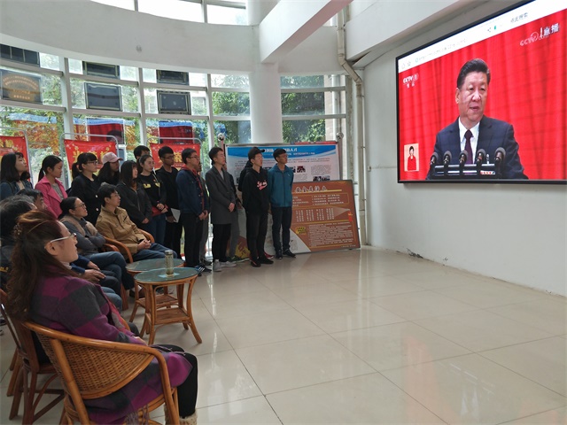 10月18日上午,中国共产党第十九次全国代表大会在北京隆重开幕。计算机与信息工程学院、软件学院在党委书记谢华的带领下,学院部分领导、教工党员、团委主要团学干部共计100余人,在学院103会议室以及学院大厅显示屏前共同收看十九大开幕会盛况,聆听习近平总书记向大会作的主题为“不忘初心,牢记使命,高举中国特色社会主义伟大旗帜,决胜全面建成小康社会,夺取新时代中国特色社会主义伟大胜利,为实现中华民族伟大复兴的中国梦不懈奋斗”的报告,并在收看结束后纷纷发表感言。