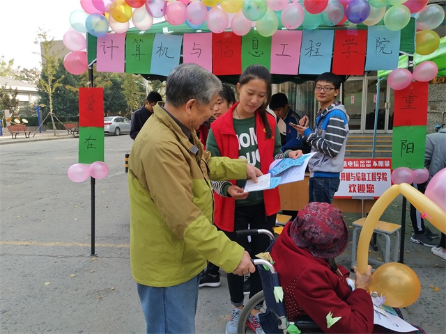 为积极响应校学生会的号召,10月28日上午,计算机与信息工程学院团委学生会志愿者服务部全体成员以及2017级志愿者参加了由校学生会举办的重阳节送温暖志愿服务活动。
