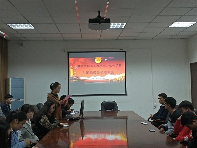 为进一步提高入团积极分子对中国共产主义青年团的认识,10月17日中午,计算机与信息工程学院、软件学院在学院103会议室举办了入团积极分子培训会。学院全体入团积极分子参加了此次活动。活动由院团委组织部部长邢雪飞主持。