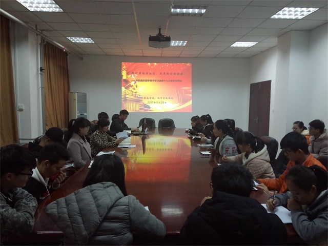 会议伊始,赵娜从十九大报告主题切入,她强调每个人都应该不忘初心,牢记使命。随后,赵娜选取了十九大报告中的几个片段为同学们进行诵读,并带领同学们学习十九大报告的内容,她勉励同学们要把学习宣传贯彻党的十九大精神作为当前和今后一段时期的首要政治任务,全面地、历史地、系统地学习党的十九大报告和习近平新时代中国特色社会主义思想。会议尾声,赵娜要求学院团学干部要做好宣传党的十九大精神的领头羊,加强自我学习,充分利用新媒体开展诵读十九大报告的活动,确保党的十九大精神学习宣传覆盖到每名学生,确保党的十九大精神入脑入心入行。