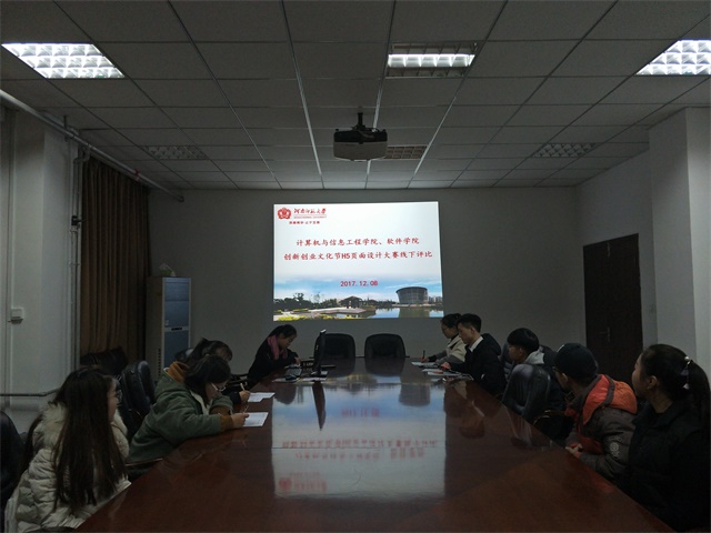 为了丰富校园文化生活,发掘学生的设计潜能,培养学生的创新精神,增强学生的动手实践能力,提高学生对计算机网络平台设计应用水平,12月8日晚,计算机与信息工程学院、软件学院在学院103会议室举办了以“创意引领,精于设计”为主题的创新创业文化节之H5页面设计线下评比活动。此次活动由学院团委学生会网络宣传部承办。学院团委学生会副主席叶思齐主持。
