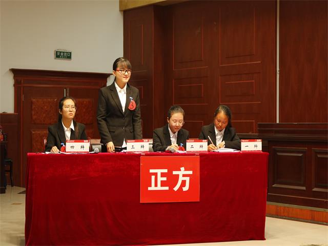 为丰富同学们的课余生活,提高我院学生的语言表达能力和逻辑思维能力,我院积极参加了由校团委、校学生会主办的“思辨杯”辩论赛,比赛于10月20日下午在东区模拟法庭举行。我院代表队由崔甜甜、李改、黄淑清、王安琪四名学生组成。