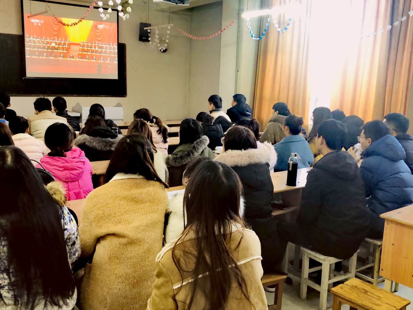 同学们早早来到收看现场,怀着激动的心情等待大会开幕。上午十点整,大会正式开幕。当看到改革先锋等杰出人物的介绍和颁奖时,同学们都十分感慨,深刻感受到四十年来时代发生的巨大变化。大家聚精会神地聆听习近平总书记的重要讲话,认真聆听、认真思考,对我国改革开放40年来取得的伟大成绩感到十分振奋,对未来充满信心。
