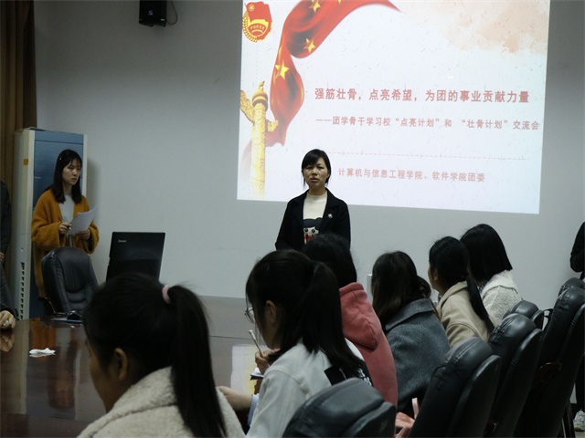 为响应校团委实施“壮骨计划”及“点亮计划”通知,3月14日中午、3月18日下午,计算机与信息工程学院、软件学院团委在学院103会议室,分别举行了团学骨干学习校“点亮计划”和“壮骨计划”交流会。交流会以“强筋壮骨,点亮希望,为团的事业贡献力量”为主题,由院团委书记赵娜主持,学院各班团支部书记、团委各部门成员参加学习交流。