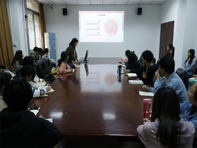 培训会分为新闻拍摄、新媒体技能两个阶段。第一阶段,代梦缘对新闻拍摄进行讲解。从相机的部件功能、拍摄前的准备事项到在拍摄时的注意事项,以及各种场景相应的拍摄技巧,代梦缘一一讲解、细致分析,用同学们拍摄的照片举例,分析照片拍摄中不足的地方,给出改进的建议,或者通过分析照片的精彩之处使同学们能够更快掌握实用的拍摄技巧。在第二阶段,王希锐、侯婉静分别借助微信和微博两大宣传平台对新媒体技能进行了实例培训。王希锐对微信的受众,以及推文的标题,排版进行了讲解。她强调细节,具体要检查标点符号,确保没有任何错误,文章要内容充实,逻辑清晰,顺序明朗。而侯婉静对于微博的讲解更多的在于自身特色,微博内容要有温度,有深度,要具有能够吸引学生的亮点,同时特别强调了话题敏感性,不要涉及争议话题,要大力弘扬中华优秀传统文化,传播正能量。