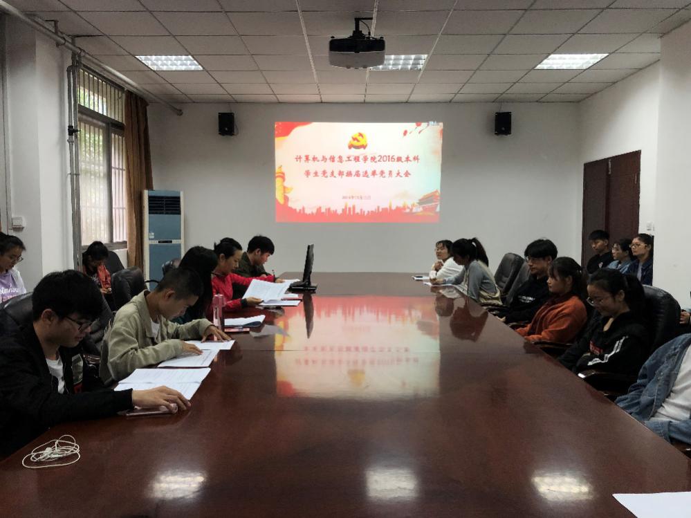 10月11日,计算机与信息工程学院2016级本科学生党支部在学院103会议室,召开支部大会进行换届选举工作。党支部书记史春花和全体党支部成员参加了会议。