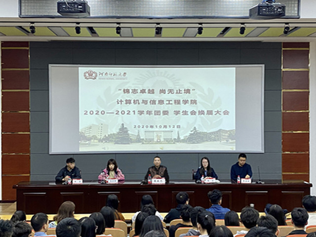为更好开展我院团委 学生会新学期的工作,10月12日晚,计算机与信息工程学院在学院217报告厅召开2020-2021学年团委 学生会换届大会。院党委副书记张东亮,院团委负责人、2018级辅导员敦洁,院研究生辅导员王士斌,2019级、2020级辅导员高若婷,2020级兼职辅导员田宇以及我院团委 学生会、研究生会全体成员和2020级部分班委参加此次会议。