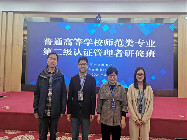 4月22日-28日,由河南省教育厅主办、河南省教育评估中心承办的2021河南省普通高等学校师范类专业第二级认证管理者研修班在郑州顺利举行。为进一步提高师范类专业培养质量和师范类专业认证水平,我院师范认证工作小组在教学副院长张恩的带领下积极参加了此次研修班。