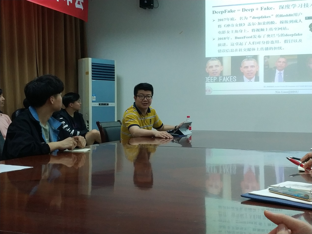 5月13日晚上,应我院邀请,湖南大学廖鑫教授在学院103会议室以“深度伪造与检测研究”为题作了学术报告,报告会由我院李名主持,学院相关专业师生聆听了报告。