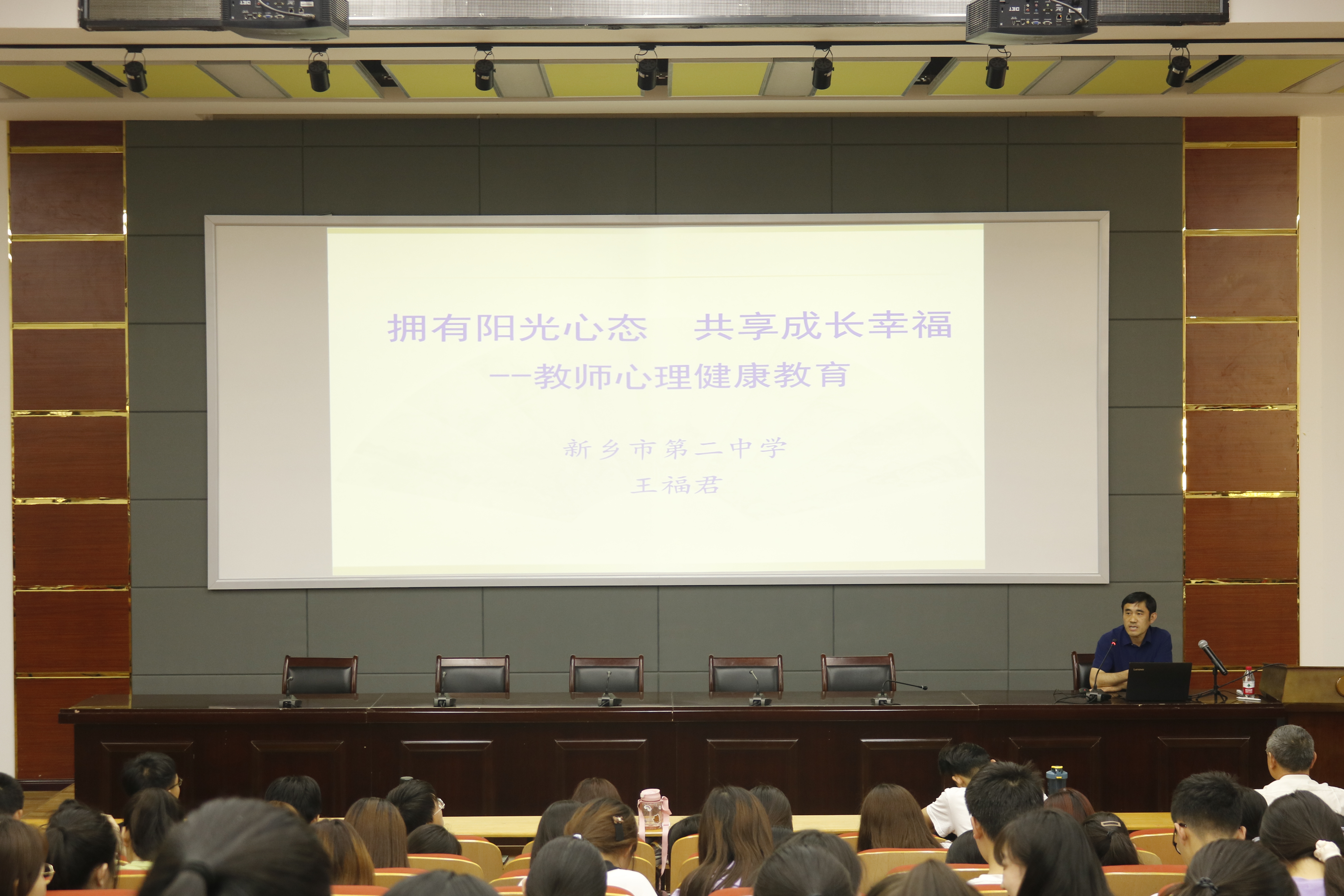 为了提升师范生的班级管理技能,提高我院的人才培养质量,6月5日下午,应我院邀请,新乡市第二中学副校长王福君在计算机学院217报告厅作了“拥有阳光心态,共享成长幸福”的教师心理健康教育专题报告,报告会由我院副院长张恩主持,学院全体师范生以及部分教师聆听了报告。