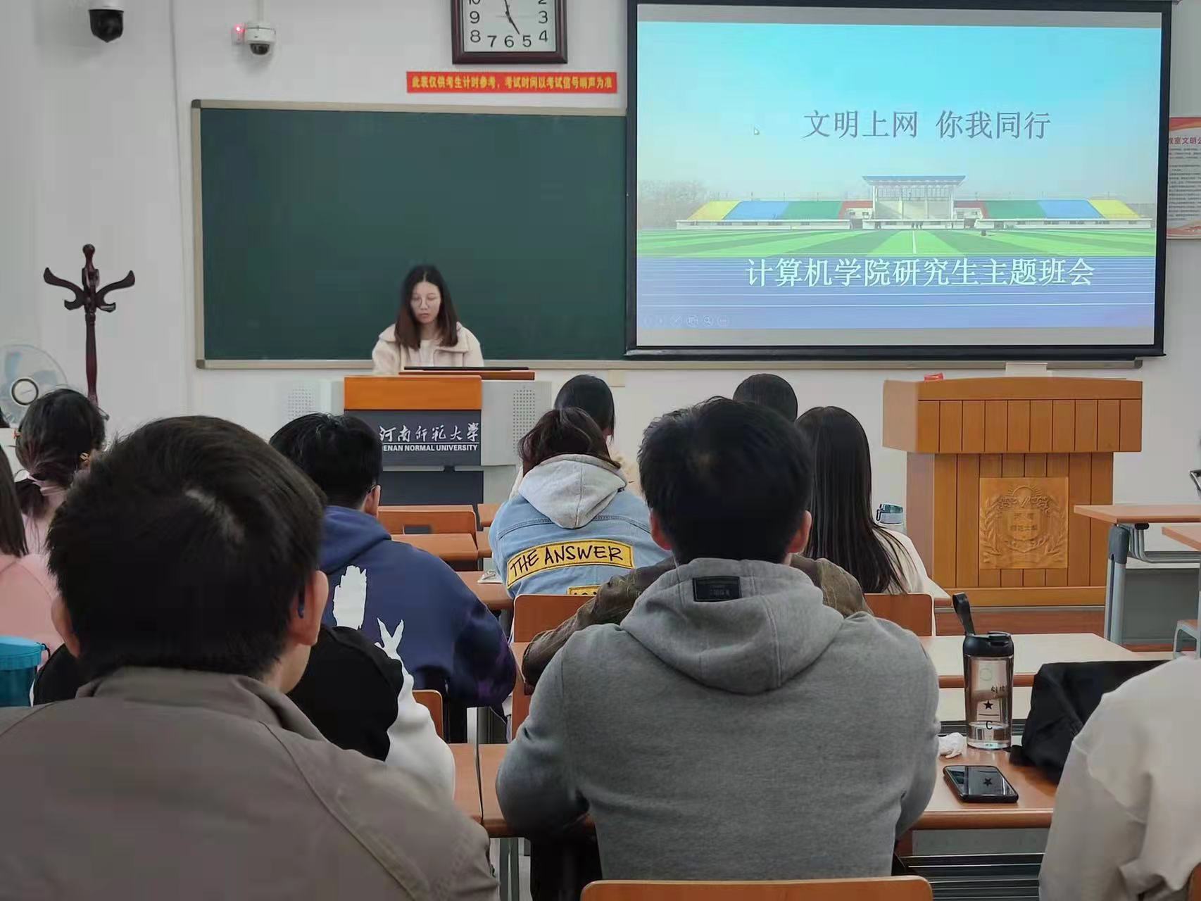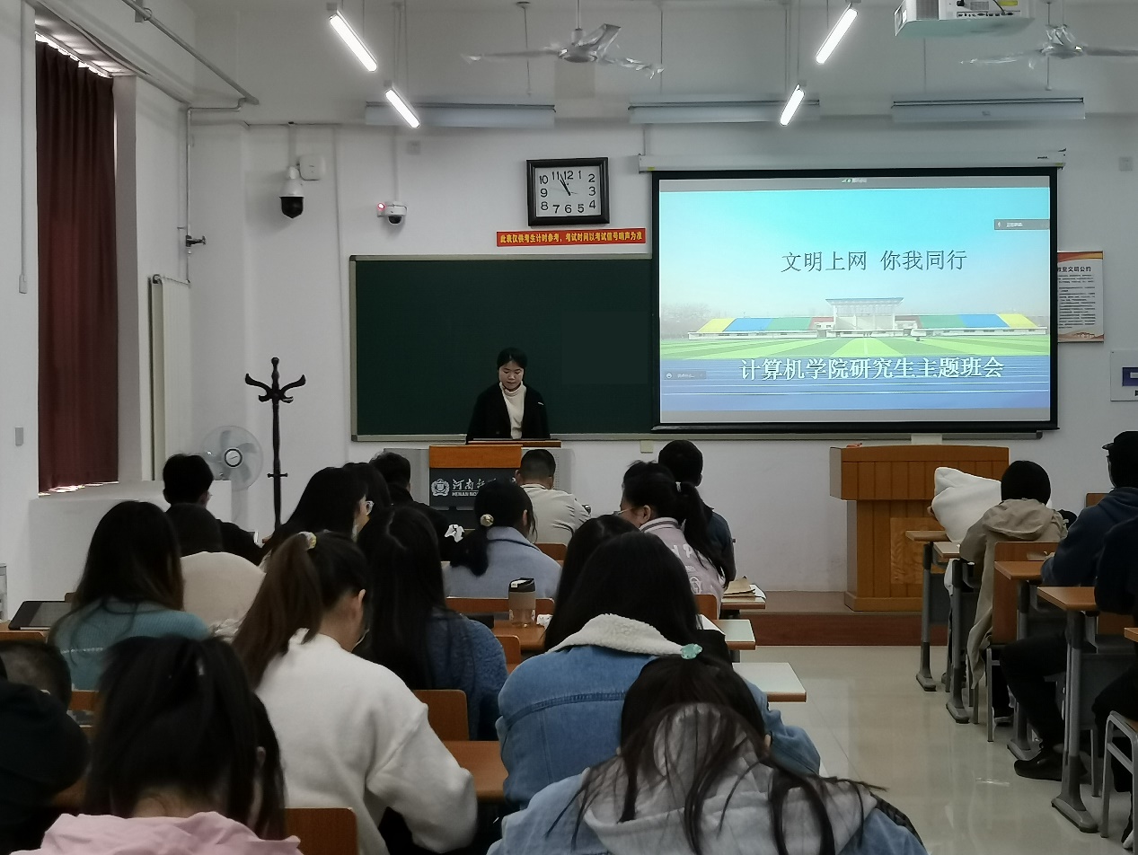 本次班会活动以文明上网视频开始,点明“文明上网,你我同行”的主题。各年级学生代表从网络安全法律法规和文明上网行为规范讲起,普及网络文明知识,倡导文明的上网行为。辅导员结合实际案例,号召广大研究生提高自身网络文明素质,教育引导研究生文明上网,提高同学们网络安全防范意识,同时筑牢思想道德防线,共建文明网络。