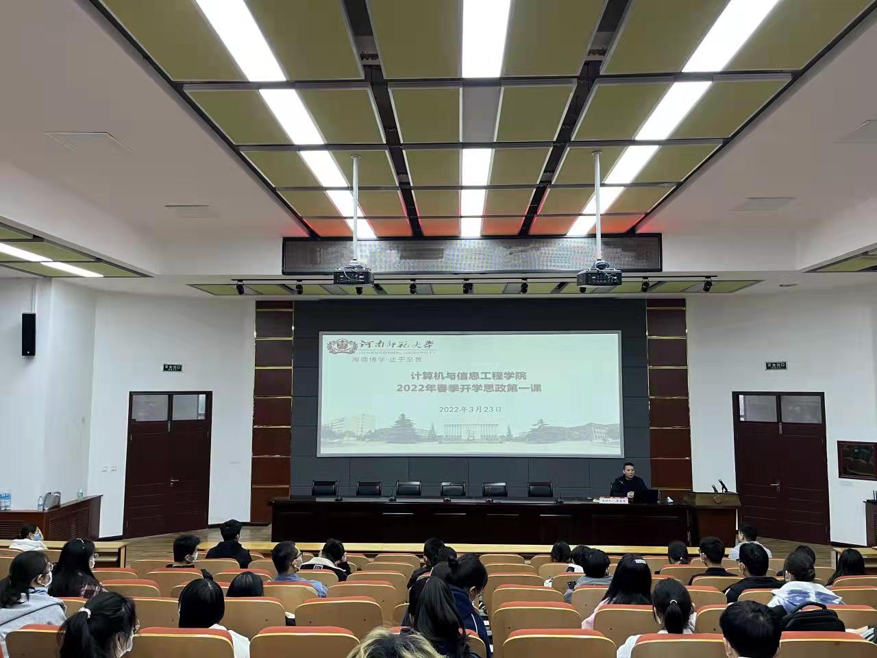 3月23日,计算机与信息工程学院在学院217报告厅组织开展2022年春季开学思政第一课。学院党委副书记张东亮担任主讲。学院各年级专兼职辅导员、学生代表参加本次活动。