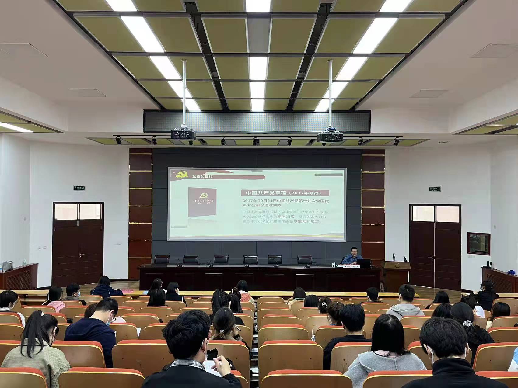 开班典礼上,院党委组织员李梦超宣读了《学院2022年上半年入党积极分子培训工作方案》;院团委副书记敦洁宣读了《学院入党积极分子培训班学员管理规定》;2020级计算机科学与技术专业于柯文作为学员代表发言;开班典礼结束后,刘栋以《学党章党规、做合格党员》为题,从党章的概述、总纲、条文等方面对《中国共产党章程》进行了深入解读,为全体学员讲授了开班第一课。