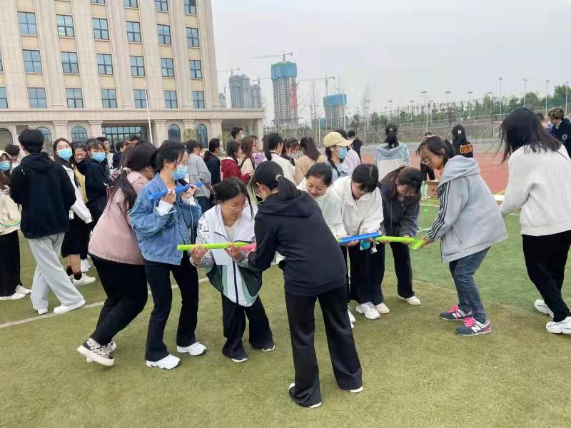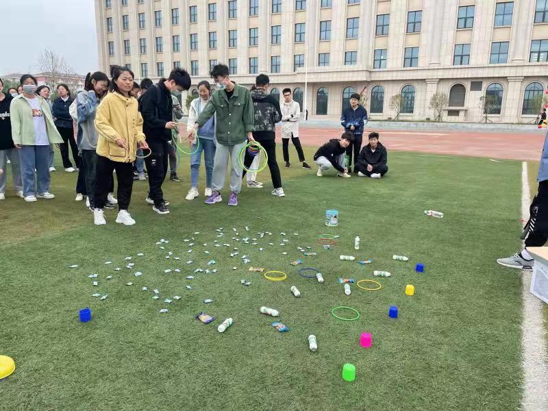 活动以班级为单位进行,共设置“平衡运送”“飞镖投手”“珠行千里”“摸石头过河”“抱团取暖”“心灵交换”等多个项目,集趣味性、协作性、挑战性于一体。活动中,同学们个个精神饱满、热情洋溢,大家相互协作,大显身手,欢声笑语一片。学院高度重视常态化疫情防控下的学生身心健康,政工干部深入调研、提前谋划活动项目,各班级广泛动员、积极组织学生参与,确保活动顺利开展。学生时清玮表示,此次活动使同学们走出宿舍、走进操场,释放了身心压力,增进了交流沟通,营造了良好班级氛围,期待更多此类活动的开展。