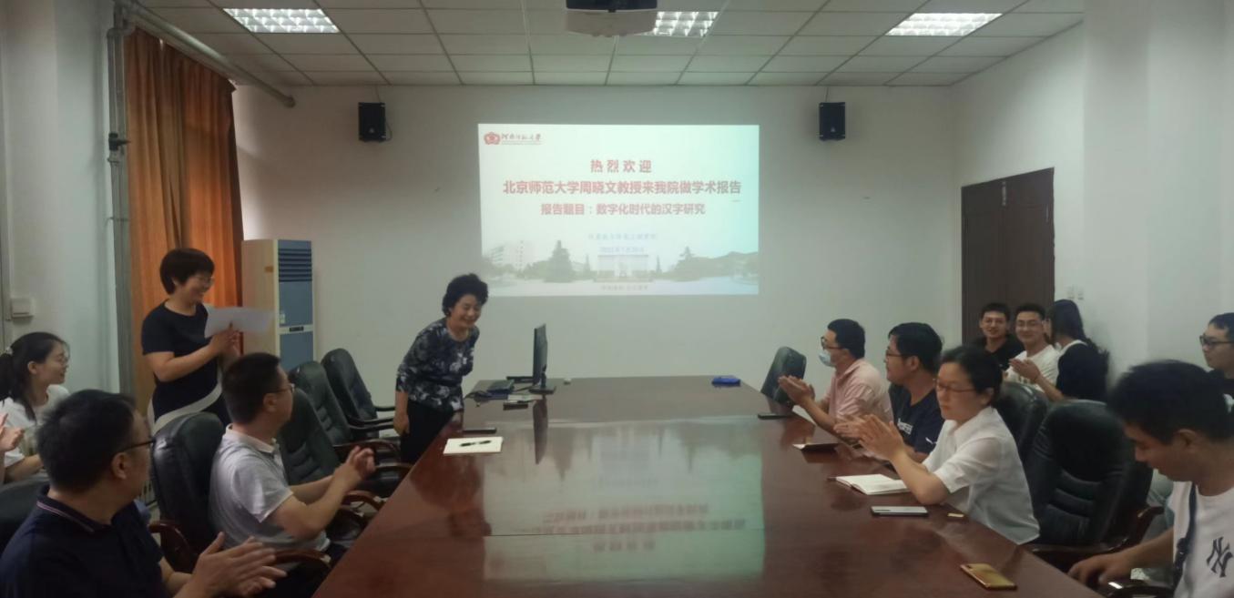 720日,应我院邀请,北京师范大学文学院周晓文教授为我院师生作题为“数字化时代的汉字研究”学术报告。刘栋院长与相关研究方向教师、研究生参加了本次报告会,报告会由张俊娜副院长主持。