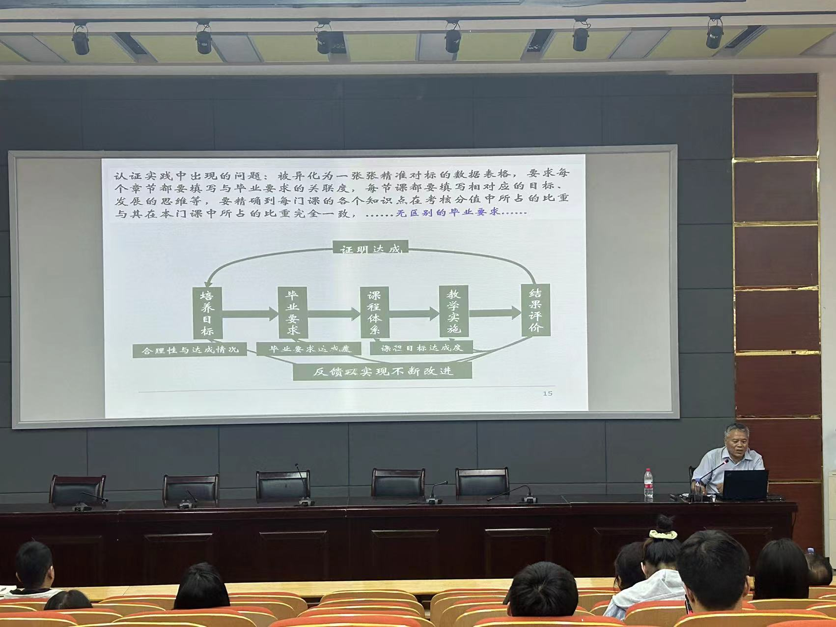 报告内容首先简要讨论高等教育需要当前的基本形势;其次,讨论工科本科教育聚焦学生解决复杂工程问题的能力培养的基本定位,通过具体讨论人才培养意义下的“复杂工程问题”,明确课程教学的发力点;再次,按照面向产出的理念,讨论科学系统地设计培养方案,强化专业毕业要求的落实,并站在人才培养系统的高度重新审视课程目标设计和教学落实,以研究型教学高质量地达成教学目标,为专业毕业要求的达成提供强有力的支撑;最后,讨论了课程目标达成评价,以及基于课程目标达成评价的毕业要求。通过聆听该报告,使得与会师生受益匪浅,为本科教学及专业建设指明了前进的方向。