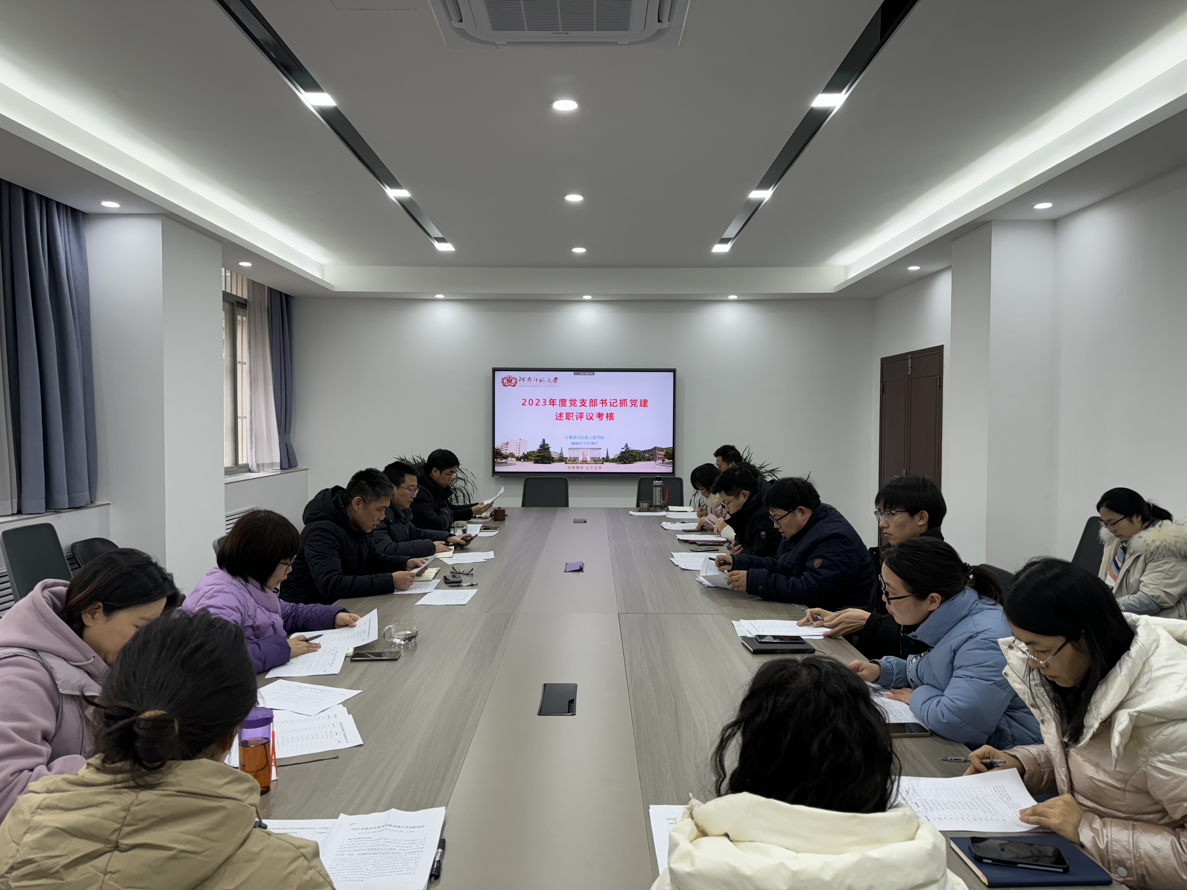 1月19日,我院在计算机楼103会议室召开2023年度党支部书记抓党建述职评议考核会。学院党委委员、党支部书记、师生党员代表参加会议。会议由学院党委书记瞿洪明主持。