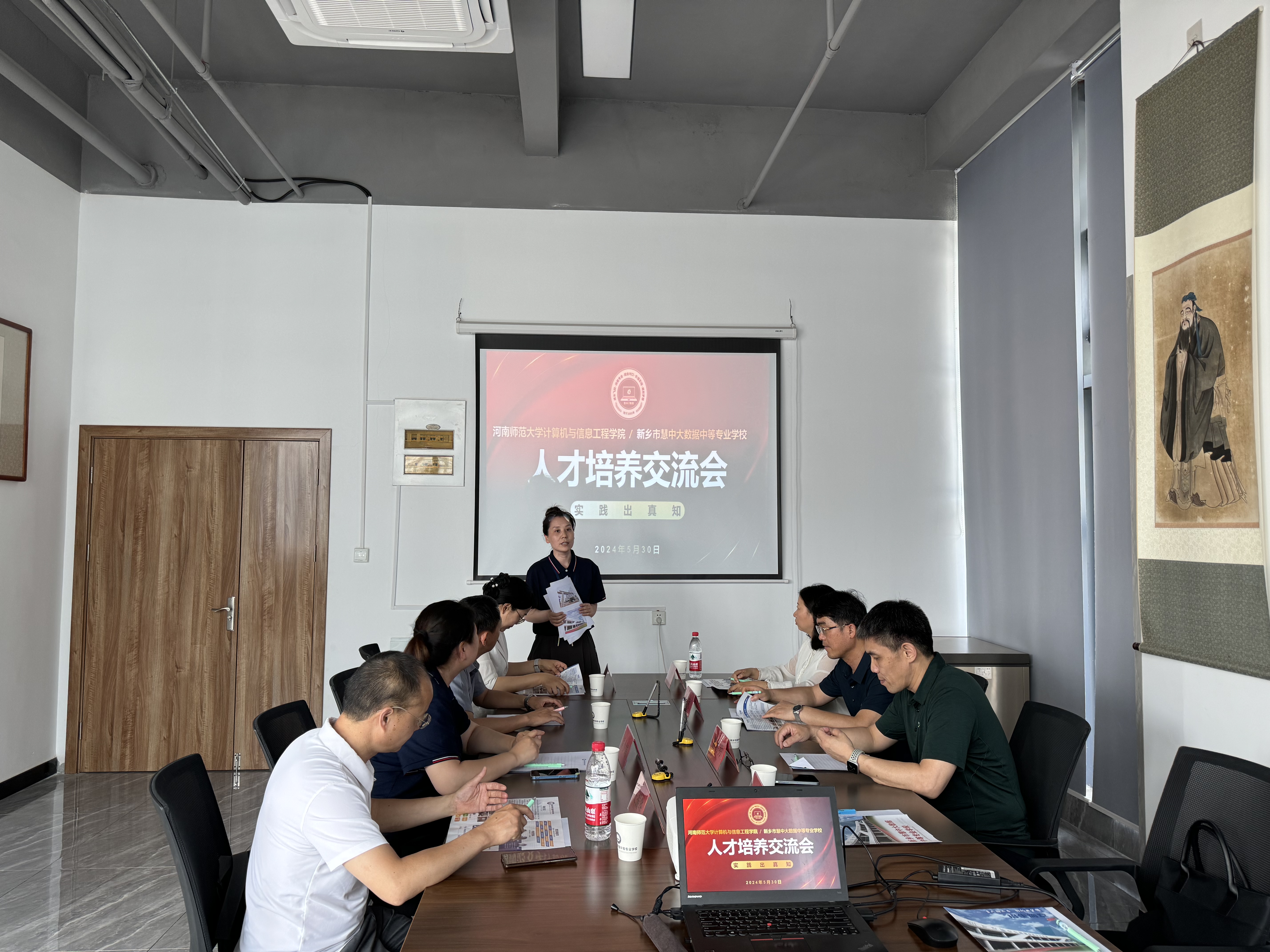 座谈会上,新乡慧中大数据中等专业学校校长袁小娟对学院一行到访表示热烈欢迎,并详细介绍了慧中IT集团的基本概况、项目简介等内容,表达了与学院进一步深度合作的意愿。瞿洪明代表学院对慧中IT集团前期友好合作和支持表示感谢,并介绍了学院概况、毕业生就业等情况。双方在人才培养、学生实习就业等进行了充分交流。双方均表示后续将进一步加强在联合实训、暑假小学期、毕业生职业规划培训等方面合作,实现互利双赢。