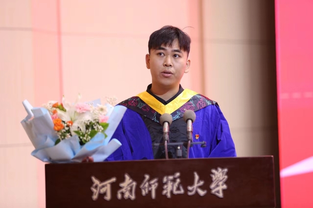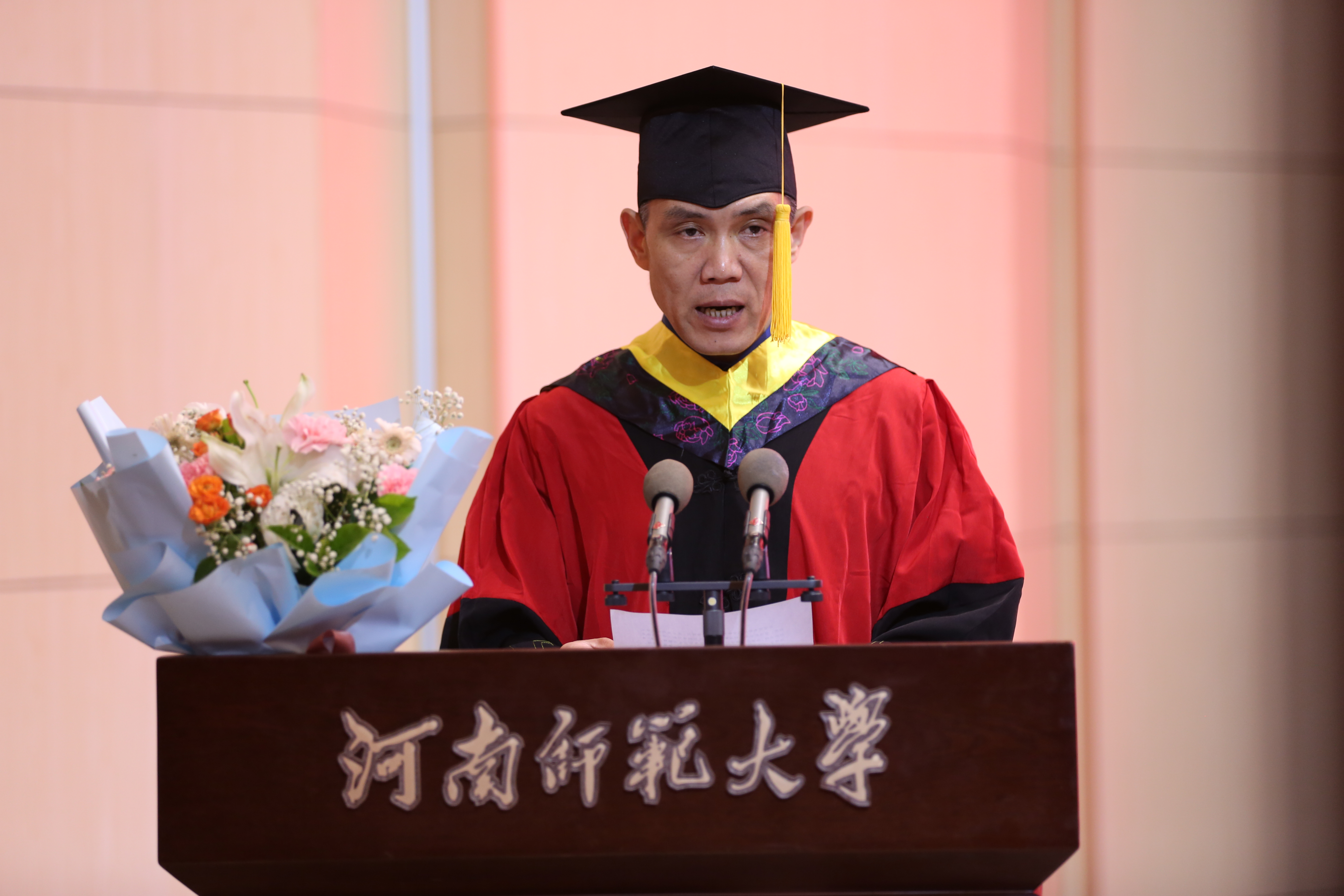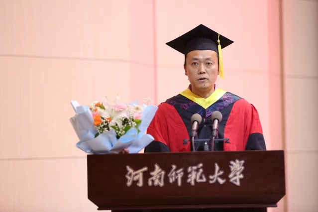 校党委教师工作部部长、人力资源部部长、教师中心主任、学院院长刘栋向毕业生表示热烈祝贺,并深情寄语毕业生:要树立远大理想,从容笃定,书写自信的人生本色;要坚持学习,持续钻研,磨炼过硬本领,打下自信的人生底色;要投身强国建设,实干担当,绽放自信的人生亮色。希望毕业生们乘风破浪、勇往直前,带着师大赋予的精神和品格,带着师大教给的智慧与能力,在广阔天地中奋力拼搏、大有作为。