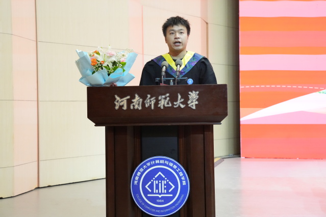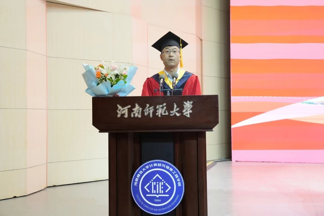 教师代表申华磊、校友代表曹洋分别发言,鼓励同学们在今后的人生路上感恩母校、踔厉奋发、追逐人生梦想。研究生代表周长顺、本科生代表李东辉分别表达了对母校、恩师的眷恋不舍和对未来的无限憧憬。毕业生代表为参会教师敬献了鲜花,全体参会人员进行了合影留念。