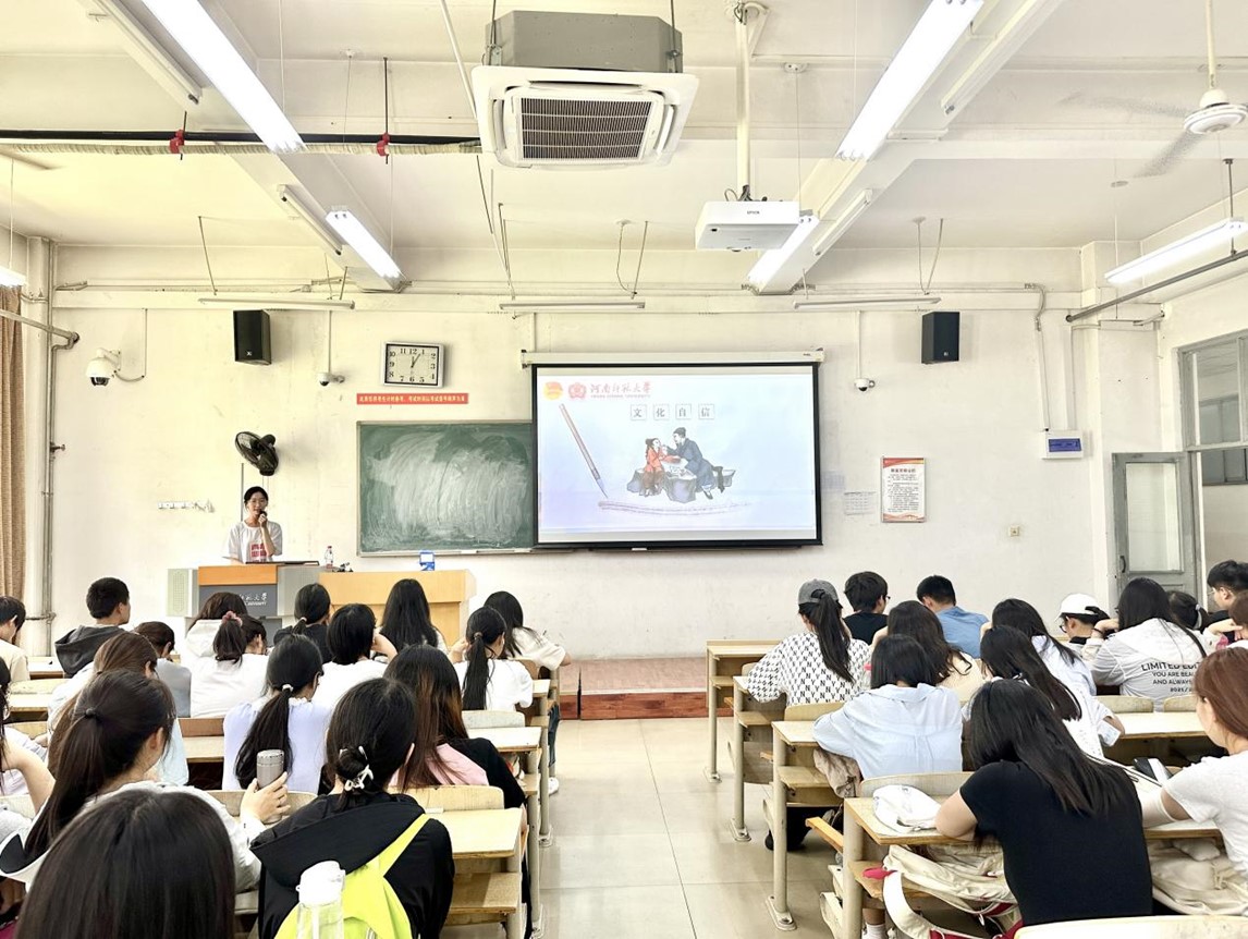 此次宣讲活动以《感受文化之美,树立文化自信》、《以青春筑界碑,做边防英雄的传人》、《点点星火照前路,不畏牺牲求向前》三个主题展开。首先,王瑞洁同学通过介绍象形文字、古代生活器具、传统服饰等优秀中国传统文化,深入挖掘中华优秀传统文化的内涵和价值,使同学们深刻地感受到中华文化的博大精深和独特魅力。接下来,马文瑾同学播放了边防战士们誓死保卫国家边界的战斗视频,御敌戍边的英雄团长祁发宝、“清澈的爱,只为中国”的戍边战士陈祥榕,英雄们的事迹使同学们纷纷动容,马文瑾同学呼吁同学们应以戍边英雄们为榜样,时刻保持顽强的战斗精神和坚定的信念,做国家栋梁。最后,杨晨熙同学通过讲述那段“爬雪山、过草地”一步一步跨过两万五千里的伟大长征历程,鼓励同学们应继续学习、赓续长征精神,走好自己的长征路,为新时代添砖加瓦。此次宣讲活动在同学们激昂的掌声中落下帷幕。