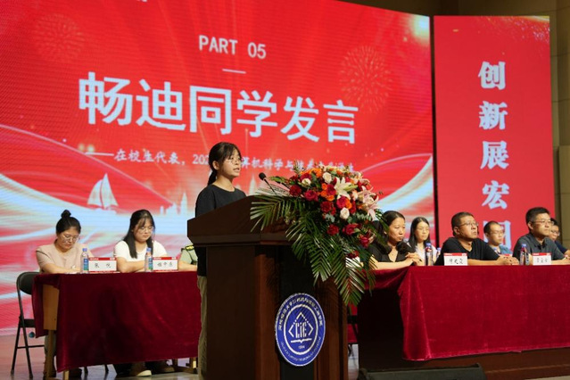在校生代表畅迪结合多年来的大学生活实际,与学弟学妹们交流了自己的学习经验和心得体会,告诫大家要尽快转变生活学习方式,尽早认清自我、做好规划,摆脱懒惰、坚持学习,功不唐捐、玉汝于成。本科生新生代表欧阳镁、研究生新生代表李灏先后发言,他们表示将始终秉持“厚德博学,止于至善”的校训,与时代共舞,与国家同行,努力做到要脚踏实地,夯实基础,不懈奋斗,保持恒心,永攀高峰,矢志不渝,坚定信心,贡献力量,时不我待。