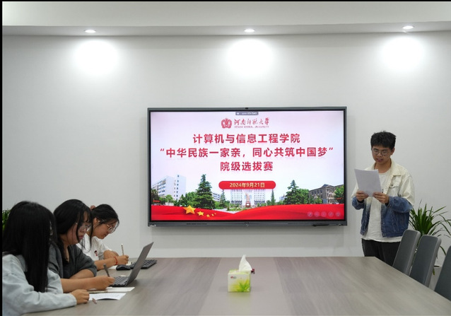 为迎接新中国成立75周年,深入贯彻落实党的二十大和二十届三中全会精神,全面贯彻习近平总书记关于加强和改进民族工作的重要思想,落实中央、省委民族工作会议精神,促进全院师生进一步“铸牢中华民族共同体意识”,9月21日,我院在103会议室举办以“中华民族一家亲 同心共筑中国梦”为主题的演讲比赛。院团委书记敦洁及各年级学生代表一同观看比赛。