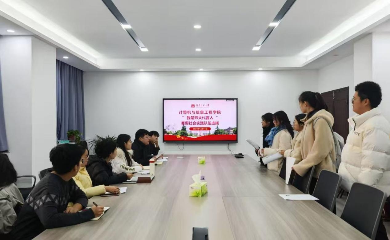 为进一步提高学生的社会实践能力和综合素质,增强学生对学校的认同感和归属感,12月11日上午我院于103会议室成功举办了“我是师大代言人”寒假社会实践队伍选拔活动。本次活动由学院魏继拓、侯世英等五名专兼职辅导员担任评委。