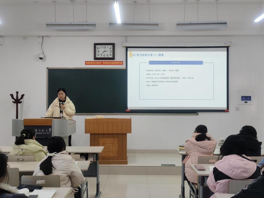 郑苏简要介绍学院推免条例,强调了明确目标的重要性,引导同学结合专业发展和自身优势,制定清晰的学习计划,明确未来发展方向。乔星星作为推免生代表做了发言,她回顾了自己的推免之路,谈到学生应科学规划好工作和学习时间,在工作中高效、精准,在学习中掌握科学学习方法,做好时间管理,做好预习和复习,并鼓励大家积极开展团队学习,如组建学习小组、寻找学习伙伴等。学姐的谆谆教诲,让在场的同学们深受启发,收获满满。最后,魏继拓对乔星星的经验分享做出感谢,希望同学们能从此次交流分享会中汲取养分,同时叮嘱大家学好专业课程,积极参加各类学科竞赛,以奋斗与勇毅为青春底色,找准前进方向,开启人生新篇章。