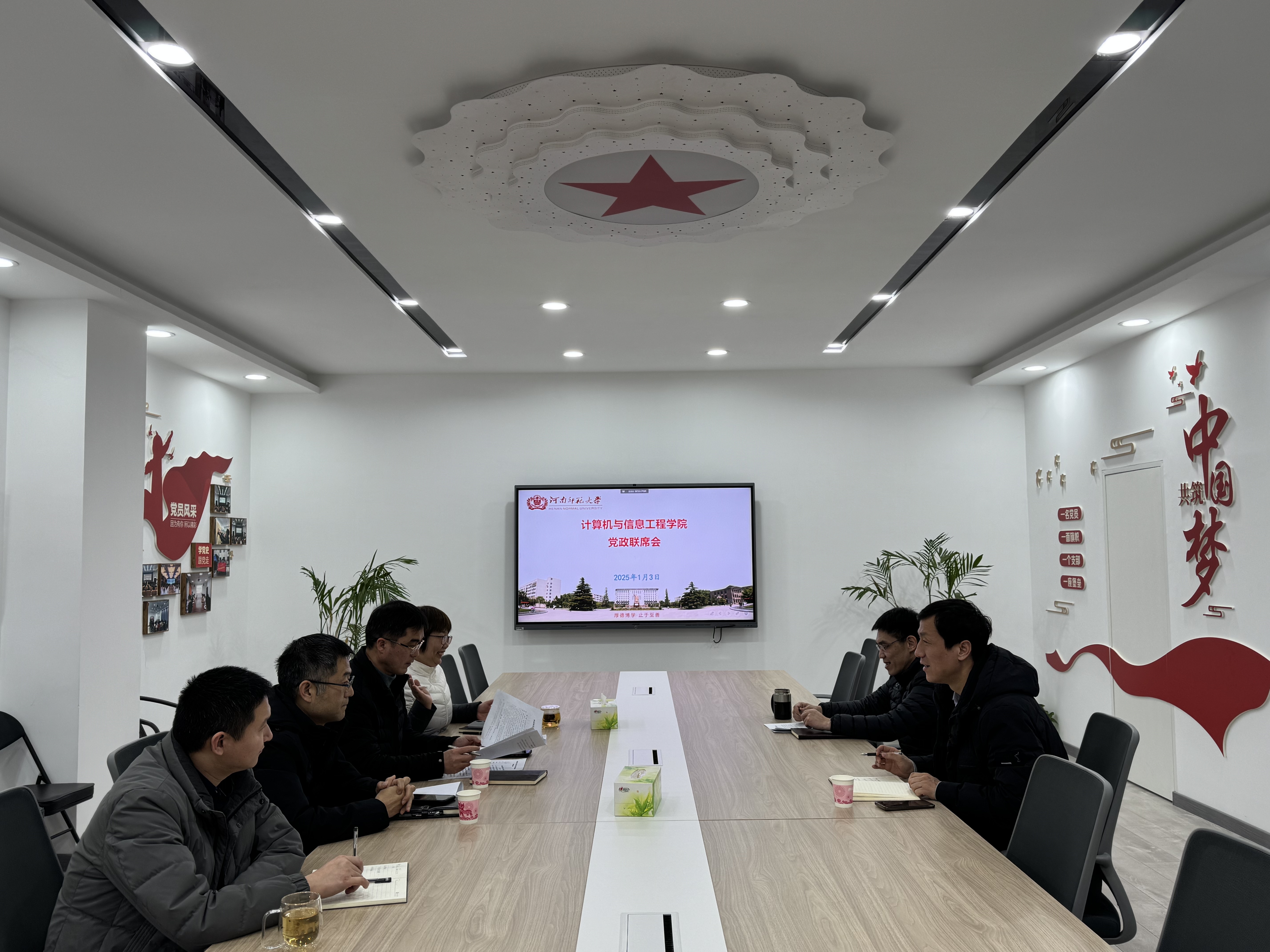 1月3日下午,计算机于信息工程学院在学院210会议室召开党委会专题研究部署2025年度党风廉政建设工作。学院全体领导班子成员参加会议。会议由学院党委书记瞿洪明主持。