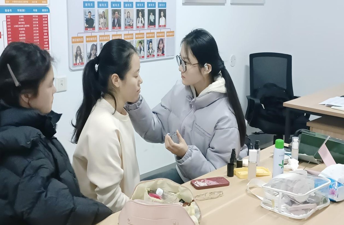 东十四楼“一站式”学生社区(计算机与信息工程学院)开展“春日巧手秀、职场换新颜”妆容教学活动