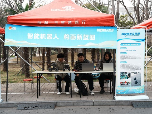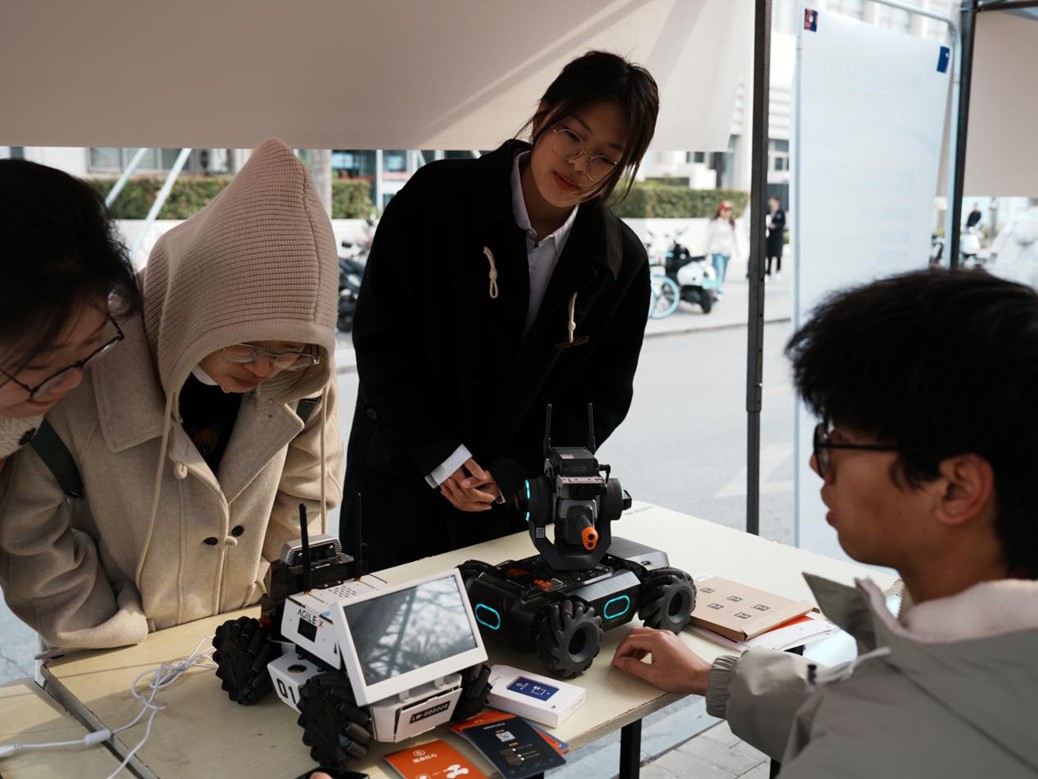 活动期间,学苑餐厅南侧充满了浓厚的创新创业文化氛围。在科技发明制作类项目的展示区域,我院的同学们操纵着智能机器人,进行了实时路径分析的精彩演示。智能机器人灵活穿梭于设定路径中,精准地规划着行进路线,展现了智能路径规划与可靠导航的宏伟蓝图。这一幕不仅令在场师生赞叹不已,也充分展示了我院在智能科技领域的研发实力和创新成果。