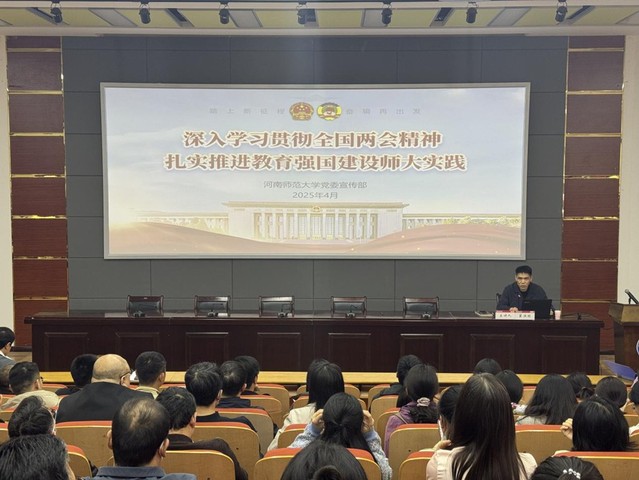 48日下午,我院在217报告厅召开“深入学习贯彻全国两会精神 扎实推进教育强国建设师大实践”专题宣讲会。院党委书记瞿洪明主讲,学院班子成员、全体教职工及学生代表200余人参加宣讲会。