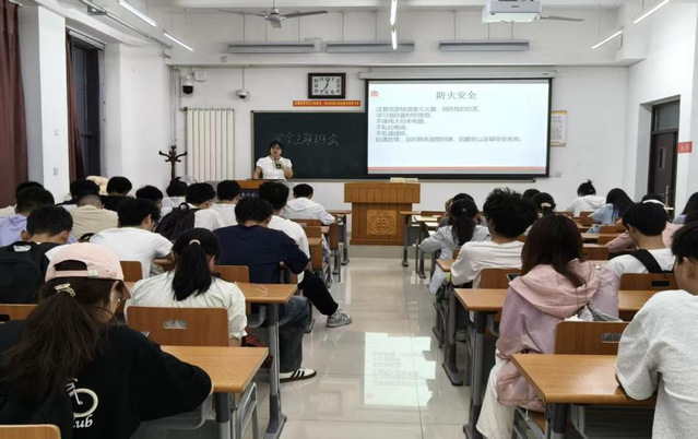 在主题教育大会上,“一站式”学生社区充分发挥其育人功能,社区楼管会成员和我院辅导员化身为消防安全知识传播者,借助案例分析、知识讲解、互动问答等多元形式,将消防安全知识生动地呈现给同学们。他们详细剖析校园火灾常见原因,从生活细节入手讲解预防措施,并传授实用的逃生技巧。针对宿舍用电安全、消防器材使用等重点内容,宣讲人员结合真实案例,深入浅出地讲解,让同学们深刻认识到违规行为的危害。一个个触目惊心的火灾案例,如同警钟在同学们心中长鸣,警示大家时刻保持安全警惕,杜绝违规使用大功率电器、私拉乱接电线等行为。
