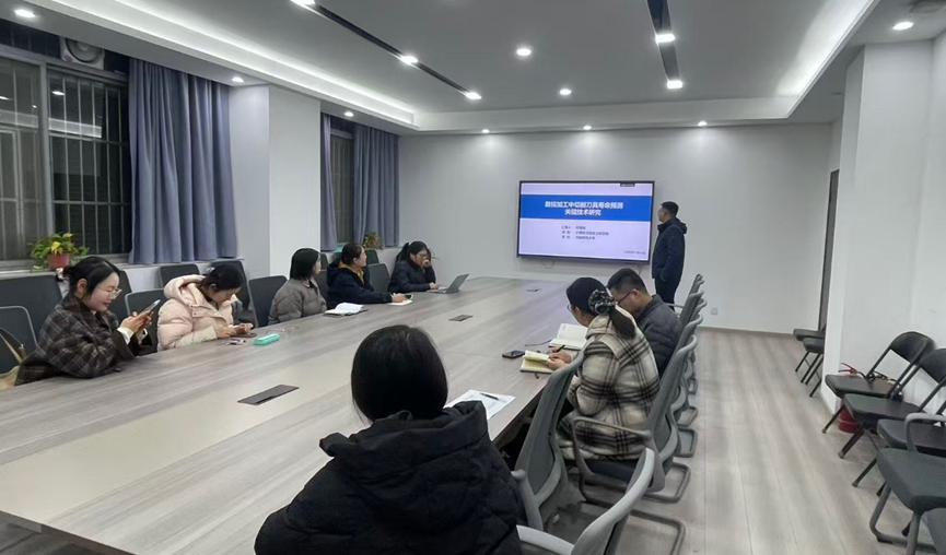 在学术分享环节,何建樑博士作了题为《数控加工中切削刀具寿命预测关键技术研究》的学术报告。首先紧密围绕国家《“十四五”智能制造发展规划》和《机械工业“十四五”发展纲要》,介绍了智能制造加工的数字化、自动化、智能化切削刀具发展中所存在的切削参数时变性、工况属性漂移、工件材质不一致性等难点。随后,何建樑博士对多源扰动下切削刀具寿命评估的不确定性耦合机制、刀具性能退化动态解耦模型、退化知识表征驱动的跨域寿命预测算法等内容进行了分享。最后,与会师生对报告中的相关内容进行了深入的讨论。