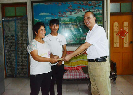 2017年8月22日,财务处党支部支部委员在支部书记周营军同志的带领下到辉县市吴村镇柳湾村进行精准扶贫调研和慰问帮扶户活动。在结对帮扶贫困户琚建国家中,面对面交谈,细致的了解了近一段时间他们的家庭状况、经济来源、子女上学等情况,并商讨在精准扶贫中双方下一步的工作重点,鼓励他们要树立信心,发展生产,增加收入,早日脱贫。据悉琚建国家长子琚镇今年被伟德官网下载苹果版新联学院录取,本就贫困的家庭又面临新的经济压力,财务处党支部全体党员踊跃捐款,奉献爱心,筹集资金2600元,现场将捐款和慰问品一并转交给琚建国家人,同时向其详细介绍了学校对于贫困生的资助政策,希望琚镇到校后要努力学习,快乐成长,早日成才,报效国家。在柳湾村期间,财务处党支部一行还同我校派驻柳湾村第一书记董国强和驻村工作队队长赵胜杰就帮扶资金的筹措与使用、帮扶项目的实施及效益等进行了座谈,深入到田间地头、光伏发电现场、种植大棚、养殖基地等进行了参观考察。