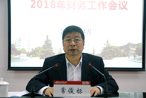4月18日上午,我校在勤政楼第四会议室召开2018年财务工作会议。校长常俊标出席会议并讲话。校内各单位财务负责人参加了会议。会议由副校长马治军主持。