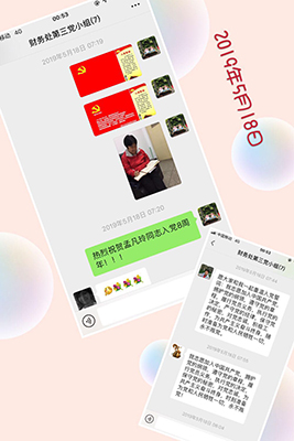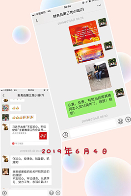 时代赋予了会计人新的使命与担当。环顾身边的同事,特别是党员同志,每一个人都是那样的勤勉、敬业。今年4月份以来,我们第三党小组先后为入党8年的孟凡玲同志、入党5年的陈彦娜同志、有着14年党龄的周其锋同志庆祝政治生日。周其锋同志在其生日感言中这样写道:不忘初心、牢记使命,认真学习,努力工作,永远在路上!