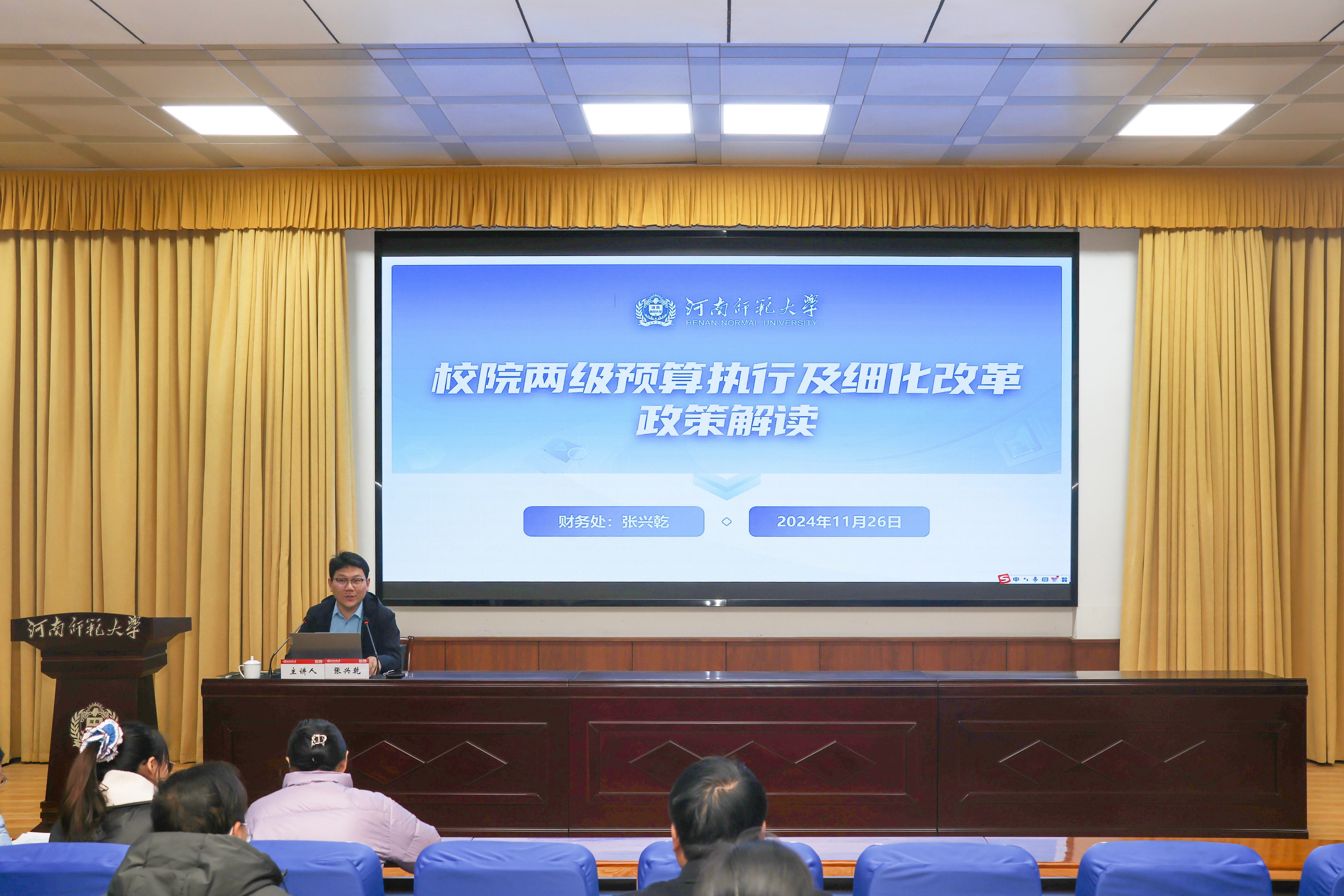 为进一步深化校院两级预算改革,提升财务工作质量, 11月26日下午,财务处在党校教室召开学院二级预算项目化实施培训暨财务制度宣讲会。各教学单位分管财务工作负责人、办公室负责人及预算编制经办人员等100余人参会。