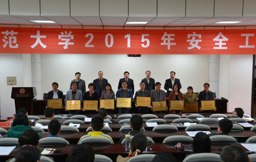 4月16日下午,我校2015年安全工作会议在勤政楼第四会议室召开。副校长陈广文出席会议并讲话。校园治安综合治理委员会副主任、防火安全委员会副主任、校办主任周营军宣读了《伟德官网下载苹果版关于表彰2013—2014年安全工作先进集体和先进个人的决定》,我处喜获先进集体荣誉称号。