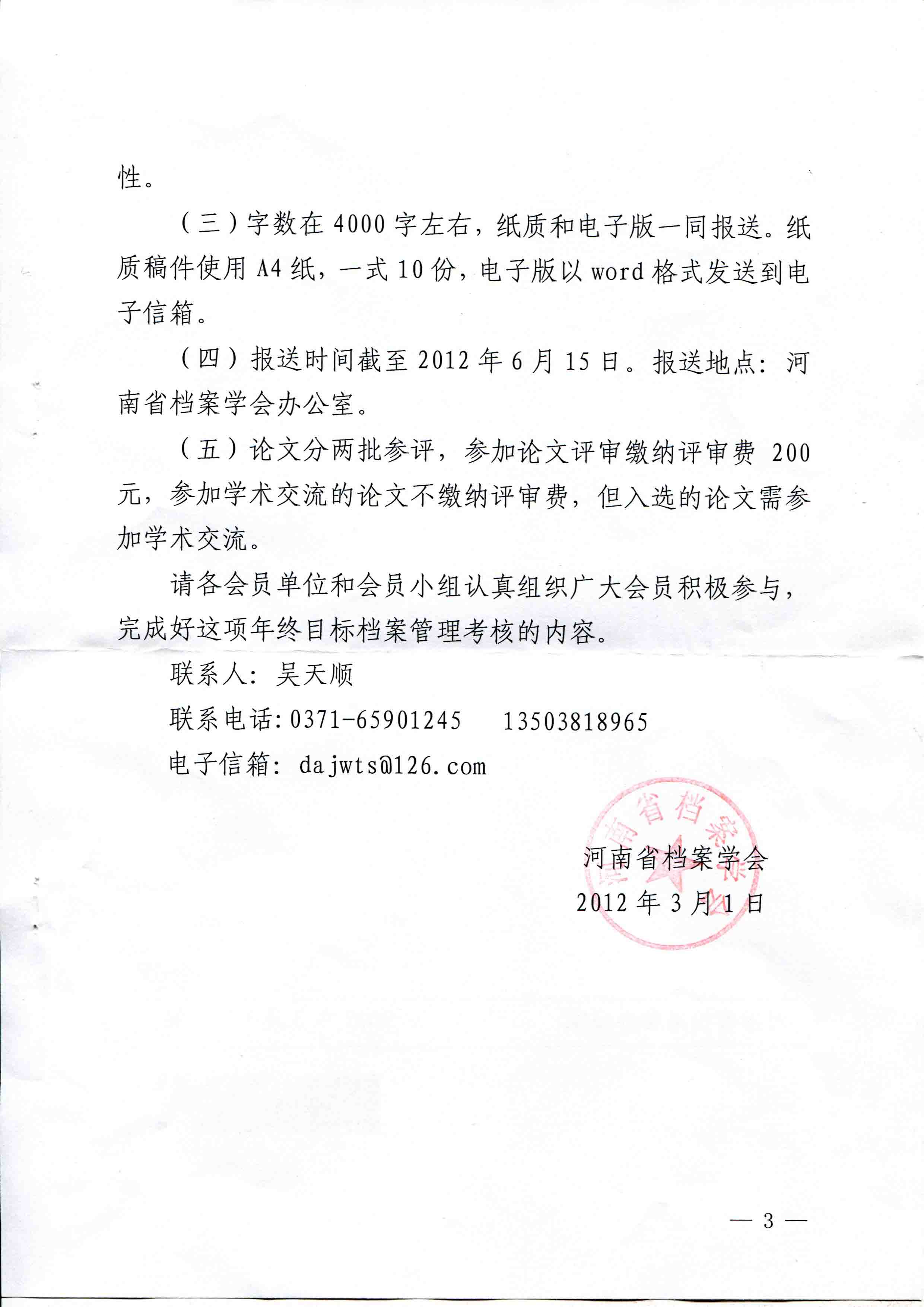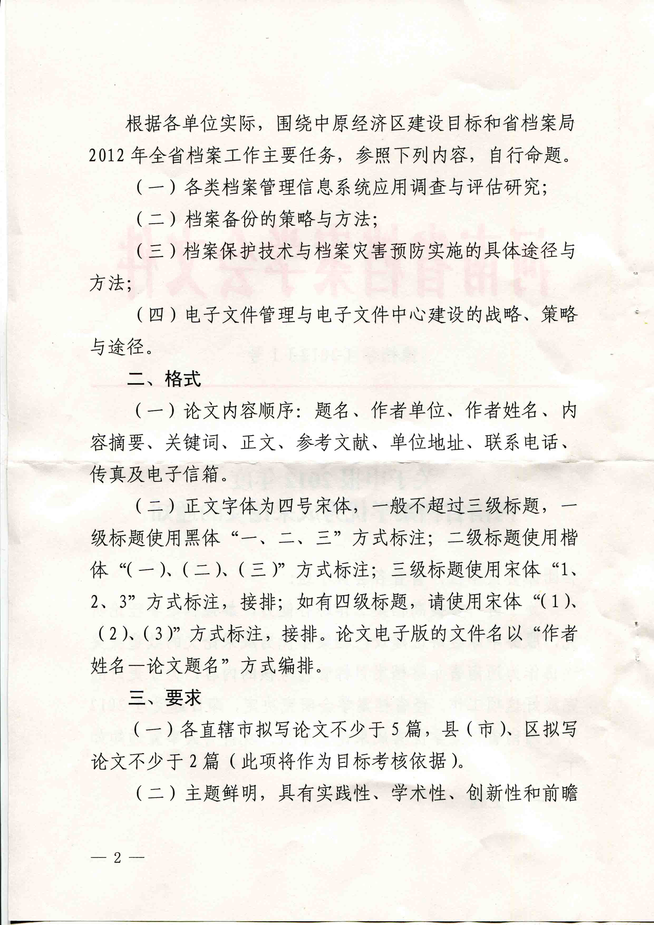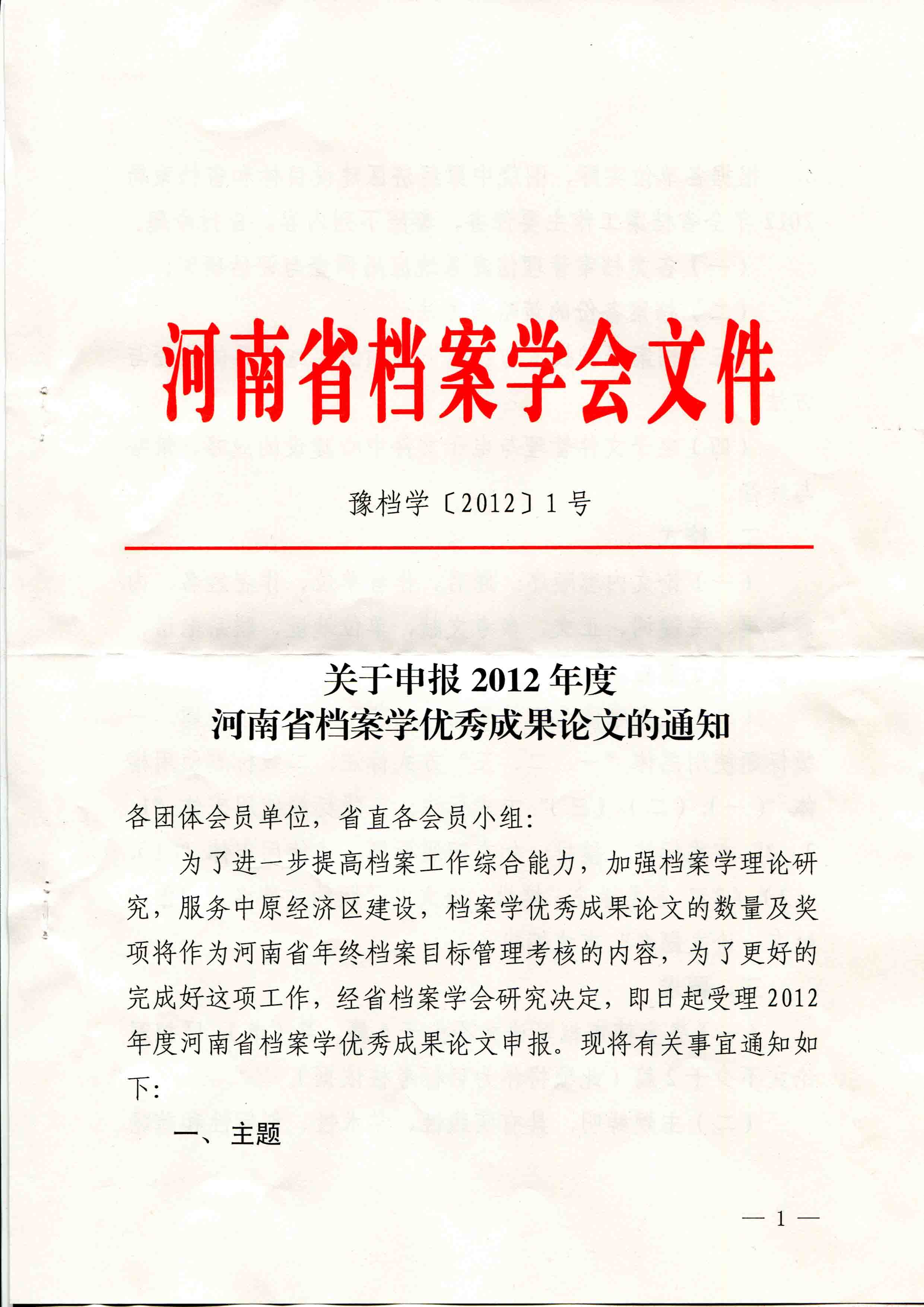 关于申报2012年度河南省档案学会优秀成果论文的通知