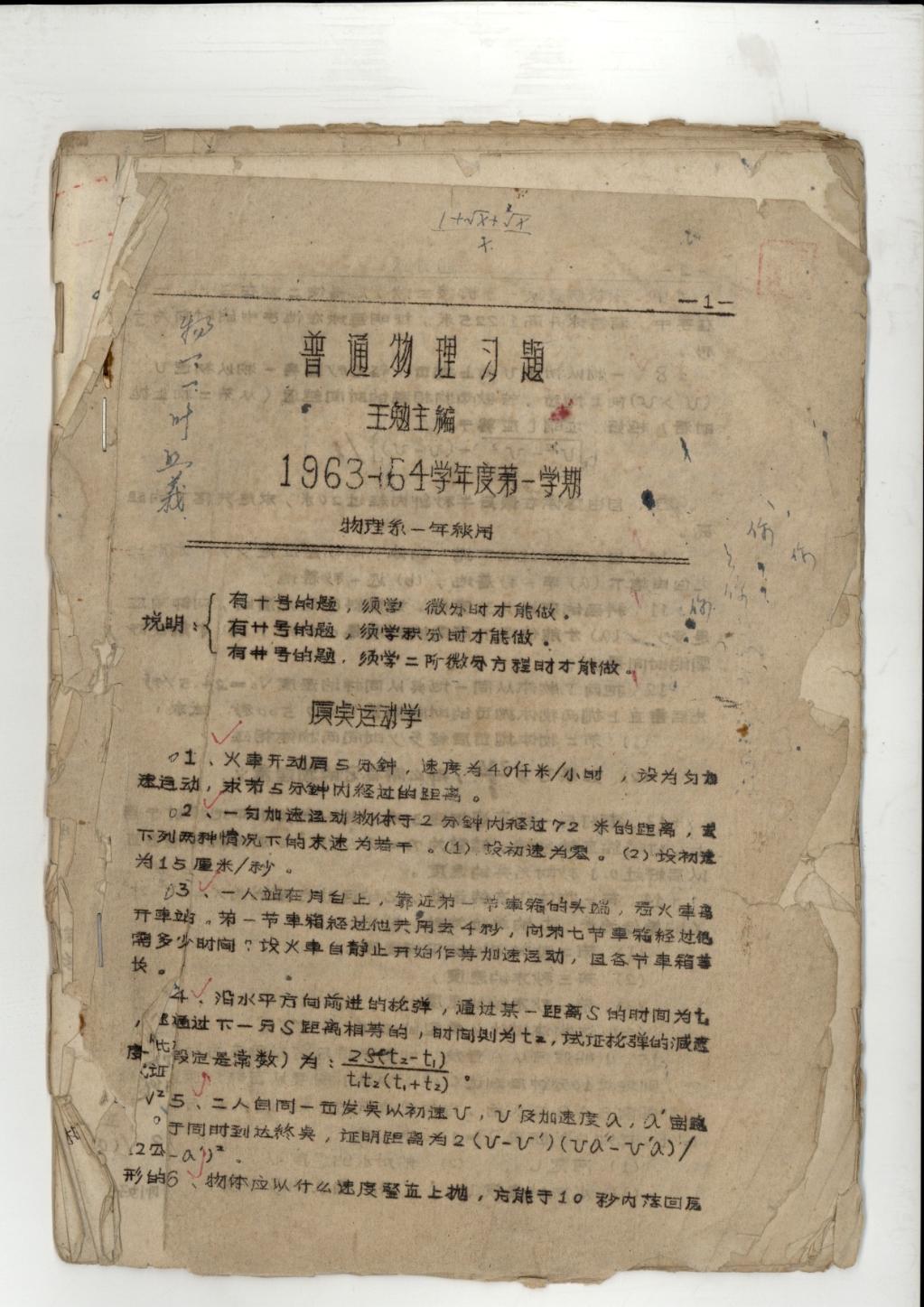 叶照义校友捐赠的物品包括:叶照义校友在校时的《高等数学补充》讲义1份、王勉主编的1963-64学年度度第一学期一年级用《普通物理习题》一本及三张珍贵的生活照片。