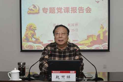 12月25日,校党委书记赵国祥在勤政楼第四会议室以“以习近平新时代中国特色社会主义思想为指导 扎实推进我校内涵建设”为题作党课报告。全体校领导、正处级干部等120余人参加报告会。报告会由校长常俊标主持。