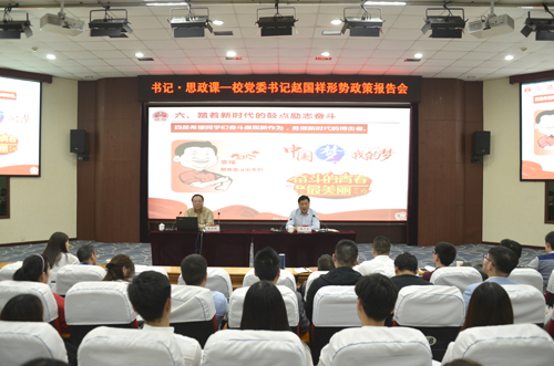 3月28日晚,一堂别开生面的专题思政课在物理北楼报告厅精彩开讲。校党委书记赵国祥以《踏着新时代的鼓点励志奋斗》为主题向我校青年师生宣讲全国两会精神。党委副书记陈广文出席并主持报告会。党委办公室、校团委、马克思主义学院负责人,各学院团委书记、师生代表共400余人聆听报告。