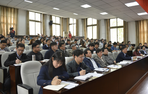赵国祥指出,这次会议全面贯彻党的十九大精神和习近平新时代中国特色社会主义思想,贯彻落实全国全省宣传部长会议和全省高校宣传思想工作会议精神,总结经验,分析形势,表彰先进,安排部署工作,是一次十分重要的会议。2017年,我校宣传思想文化工作系统牢固树立“四个意识”,坚定“四个自信”,紧紧围绕迎接宣传贯彻党的十九大这条主线,坚持社会主义办学方向,落实立德树人根本任务,理论教育入脑入心,思想政治工作提质提效,新闻舆论工作管建并举,精神文明建设深入开展,各方面工作取得显著进步。
